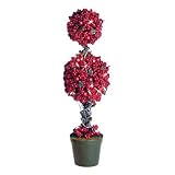 Compare Prices at here goods At Low Prices 24" Pre-Lit Cranberry Berry Double Ball Topiary Tree With Clear Lights #H89080.